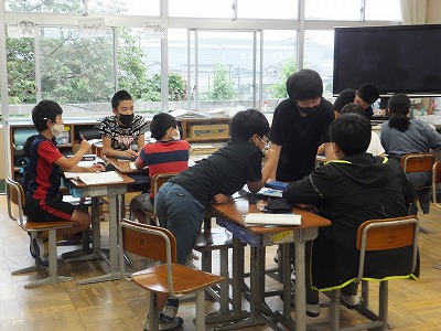 説明について理解できたか、班ごとに確認しています。