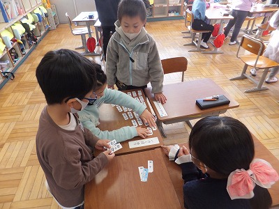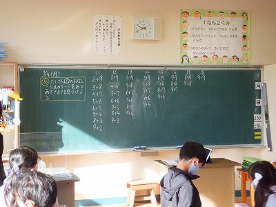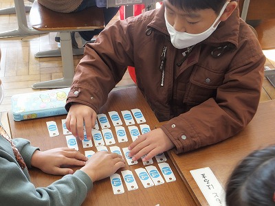 算数の時間に、答えが同じカードのを並べて、きまりを見つけました。