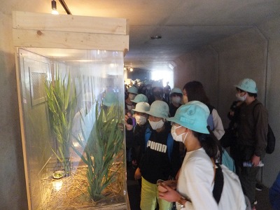 見学に来た3年生には、6年生が説明しています。