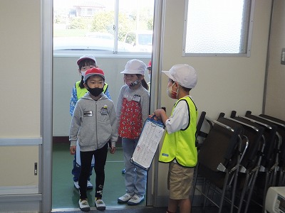 2年生の子が、入室の仕方を1年生にしっかりと教えています。立派でしたよ。