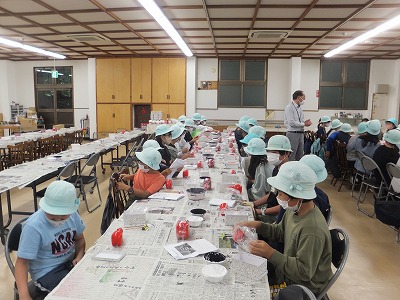 今日は、1組がゆめいろらんぷを作りました。