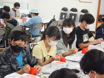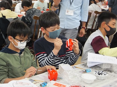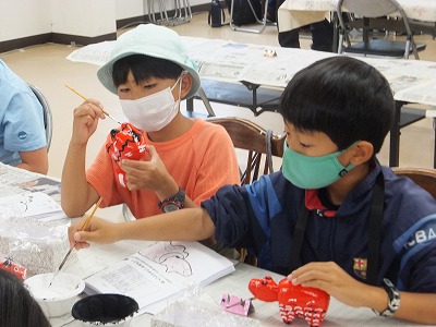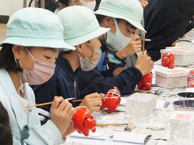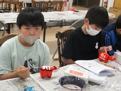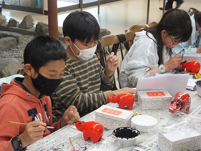 赤べこの絵付けです。