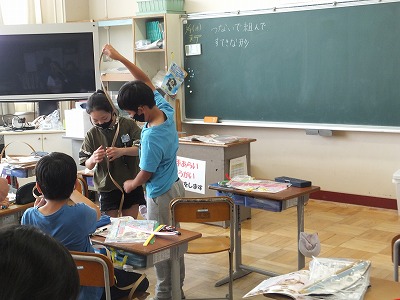 輪ゴムを鳴らすので、いい音とまではいきませんでしたが、自分の作った楽器で嬉しそうに音を出していました。