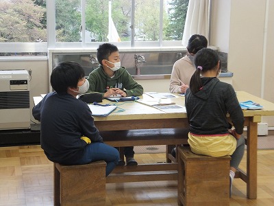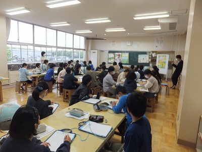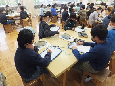 ワークシートにメモを取りながら、しっかりと話を聞いています。
