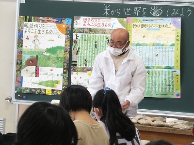 今日の総合的な学習の時間は、上野長一先生に「イネについて」の様々なお話を伺いました。