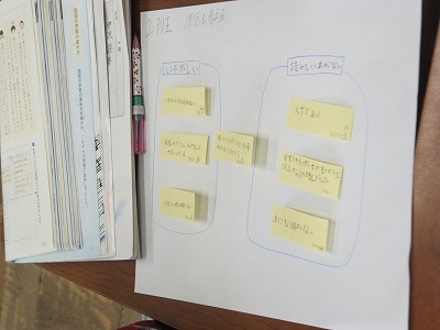 付箋を利用して、各々が考えたことを整理したり、・・・・・。