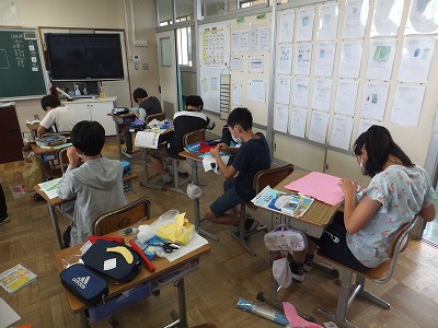 宝は、子供たちが折った折り紙です。教室のいろいろなところに隠しました。