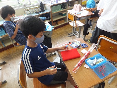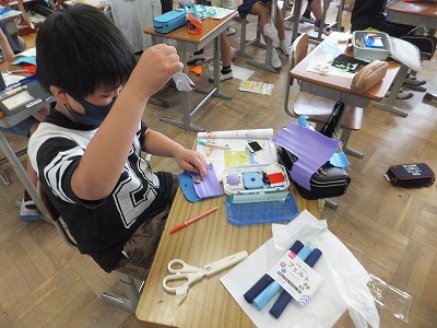 ボランティアの皆さんに教えていただいたことを思い出して、一針一針丁寧に縫っています。