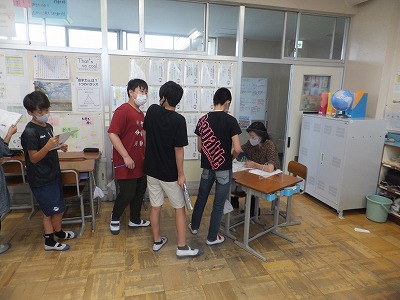 今年度最初のパフォーマンステストです。ALTの先生の質問に答えたり、逆に質問したりしています。