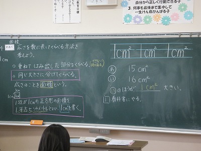 1辺が1㎝の正方形の面積は、1平方センチメートルと言い、1㎠と書きます。