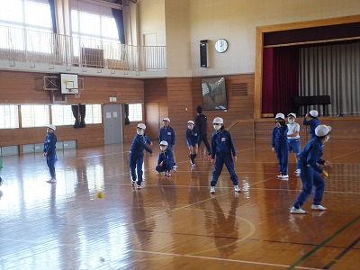 体育館で的当てをしました。