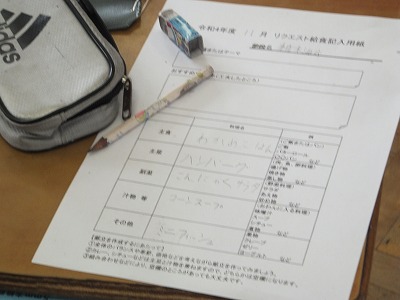 家庭科で、リクエスト給食のメニューを考えました。