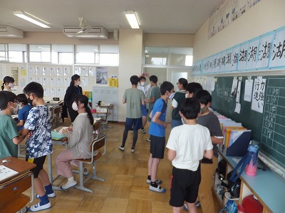 ワークシートに書いたあと、黒板に振り返りを書きました。