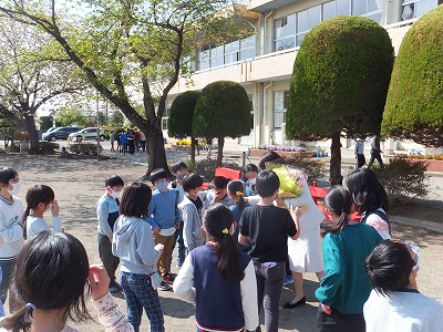 卒業生の皆さん、本校で学んだことに誇りをもち、町の子、国の子、世界の子として、大きく羽ばたいてください。