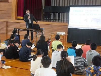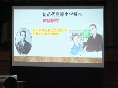 来月の修学旅行に向けて、当日見学に行く野口英世記念館の方にお越しいただき、野口英世の一生についてご説明いただきました。