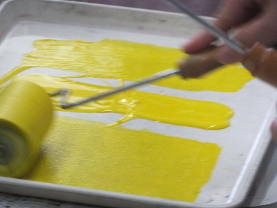 練ったら、今度は紙に塗っていきます。紙を押さえて・・・・。