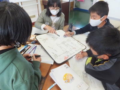 今日は、2組が拡大図と縮図のかき方について学習しました。