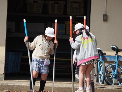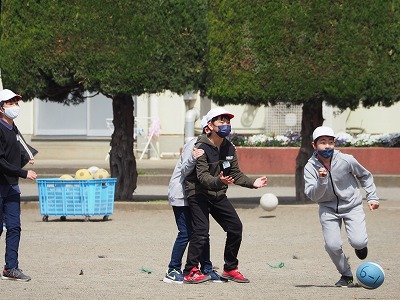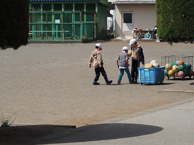 ボールは昇降口の前にこれも体育委員会の児童が用意してくれています。