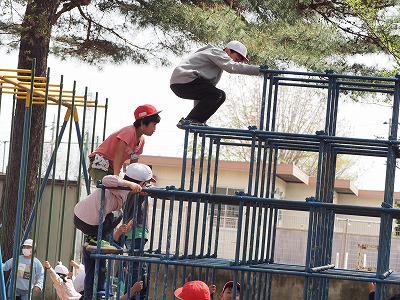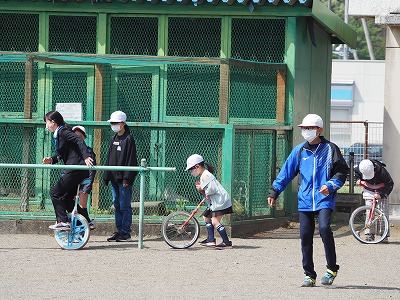 休み時間のはじめには、体育委員会の児童が「外で元気に遊びましょう」と放送をします。