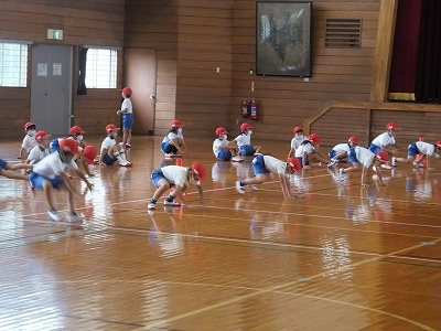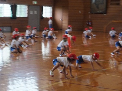グランドコンディションが良くなかったので、体育館でリレーをしました。