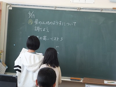 ワークシートに書いたあと、黒板に振り返りを書きました。