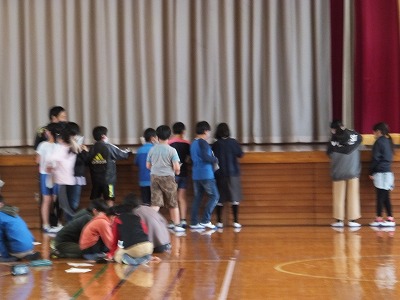 グランドコンディションが良くなかったので、体育館でリレーをしました。