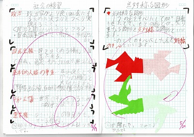 折り紙で線対称・点対象を作って復習しているところがいいですね。