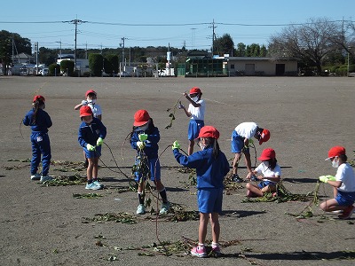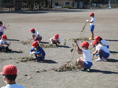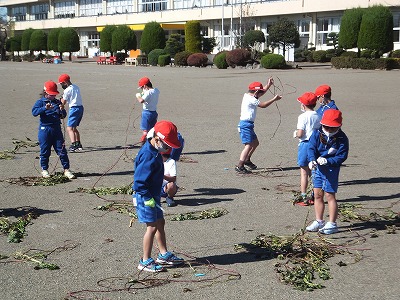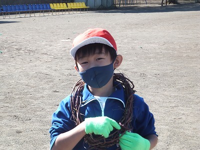 朝顔のつるで一度作っているので、要領は分かっているようです。
