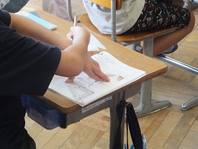 今日は、2組が拡大図と縮図のかき方について学習しました。
