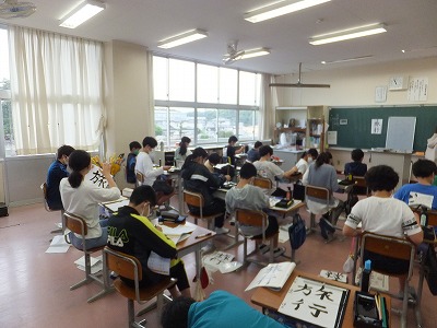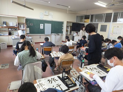 今日は、河合先生にご指導いただいて「旅行」という字を書きました。