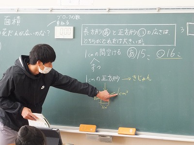 1㎠の大きさが長方形では15個、正方形では16個になるから・・・。