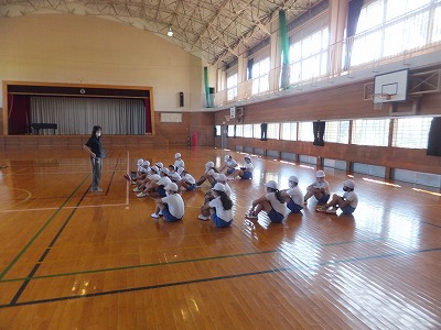 グランドコンディションが良くなかったので、体育館でリレーをしました。