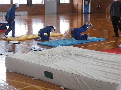 台上前転からヘッドスプリング、ハンドスプリングへと・・・・。