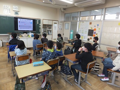 1・2組合同で冬休みの過ごし方について指導しました。