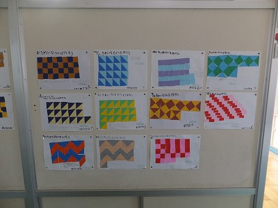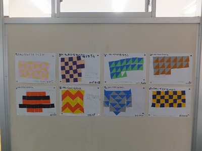 算数の時間に三角形や四角形を敷き詰めて模様を作りました。