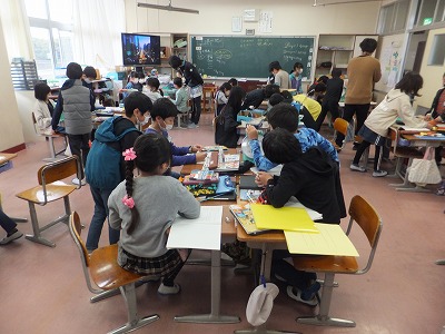 宝は、子供たちが折った折り紙です。教室のいろいろなところに隠しました。
