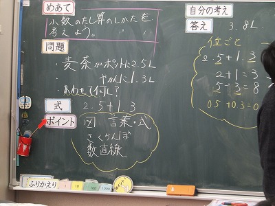 小数のたし算の仕方を考えました。