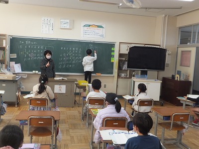 ワークシートに書いたあと、黒板に振り返りを書きました。