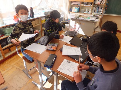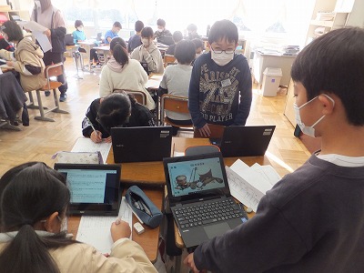 日本文化について班ごとにテーマを決めて調べ、新聞にまとめています。
