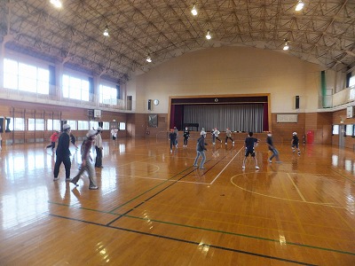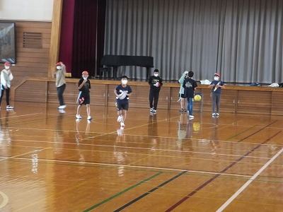 グランドコンディションが良くなかったので、体育館でリレーをしました。