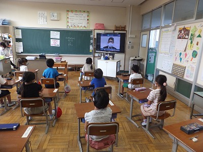 今学期もリモートでの終業式です。