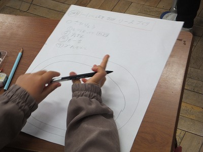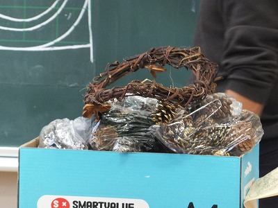24日の学校公開時に、リースを作ります。今日はどんなリースを作るかあらかじめ考えてもらいました。