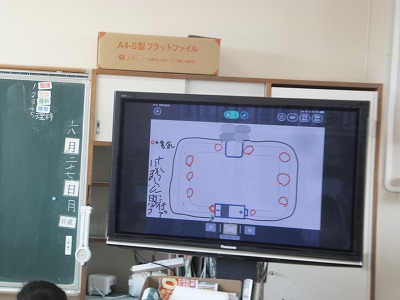 かき方を撮影して、テレビに映しています。