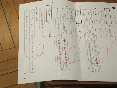 小学校生活について書いたメモをもとに、自分で練習しています。
