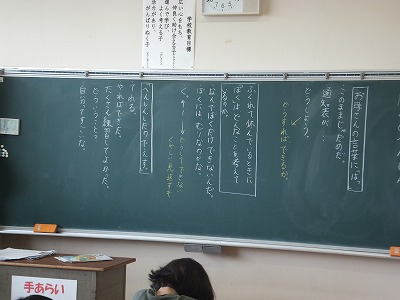 道徳の時間に、お話を読んだ後、自分が頑張っていることを思い起こしてワークシートに書きました。