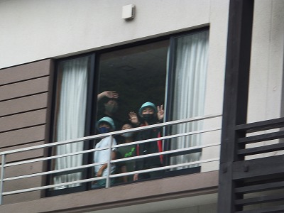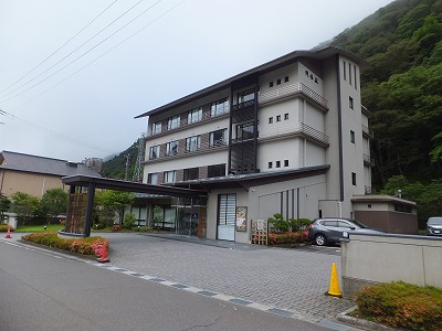 天気は曇り。比較的涼しい朝を迎えました。宿泊先の浅香荘です。全館貸し切りです。