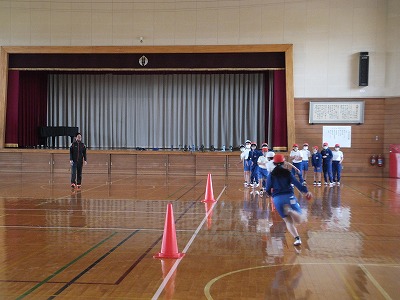 手抜きなし、どの子も自分のチームのために本気で走っています。とてもよい運動ができました。
