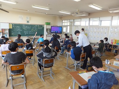 今日は、4年生がアルファベットを並べるゲームをしました。