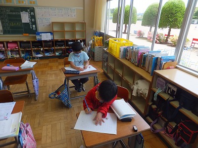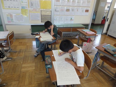 国語の時間は、家でしたことを組み立てを考えて、作文用紙に書きました。