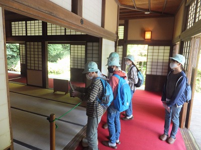 見学に来た3年生には、6年生が説明しています。